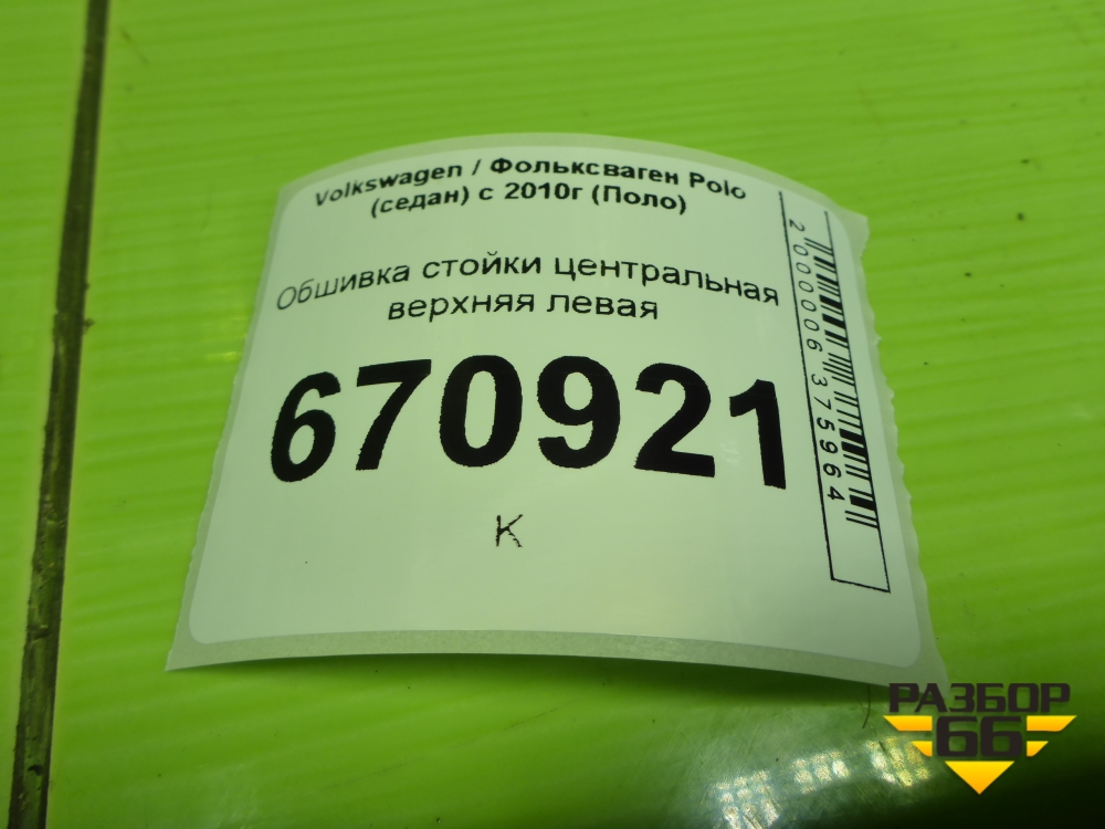 Обшивка стойки центральная верхняя левая (6RU867243E) для Volkswagen Polo (седан) с 2010г (Поло) в Уфе
