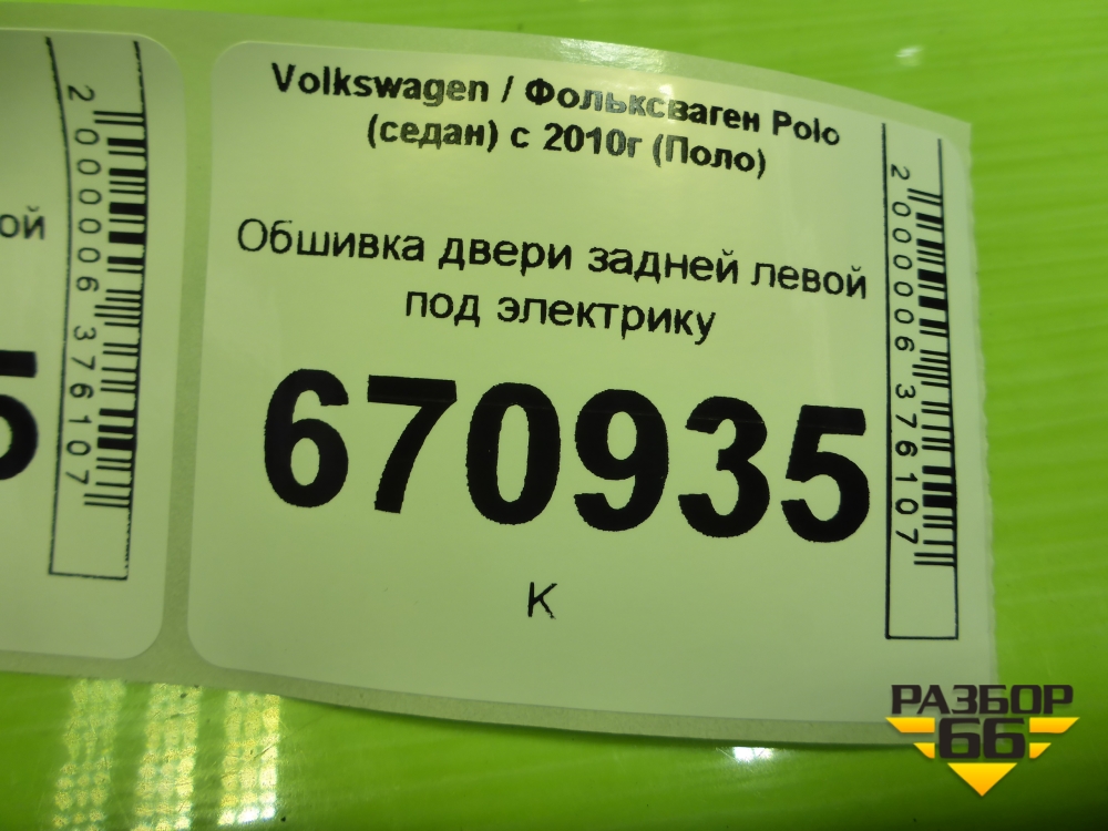 Обшивка двери задней левой под электрику (6RU867211) для Volkswagen Polo (седан) с 2010г (Поло) в Уфе