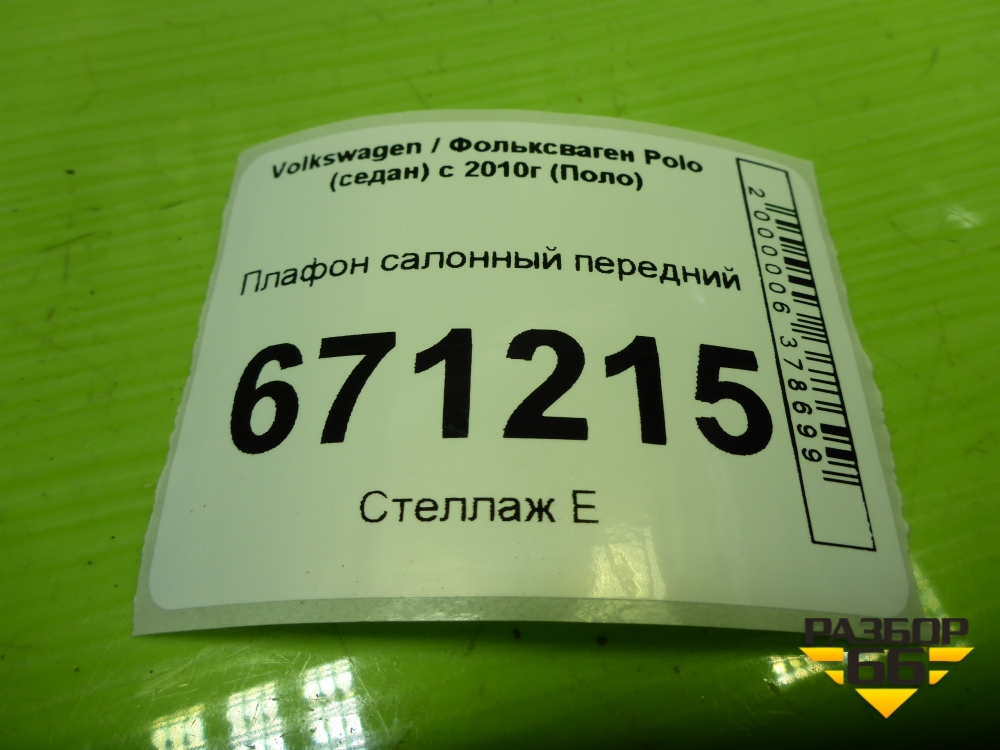 Плафон салонный передний (6Q1947105L) для Volkswagen Polo (седан) с 2010г (Поло) в Уфе