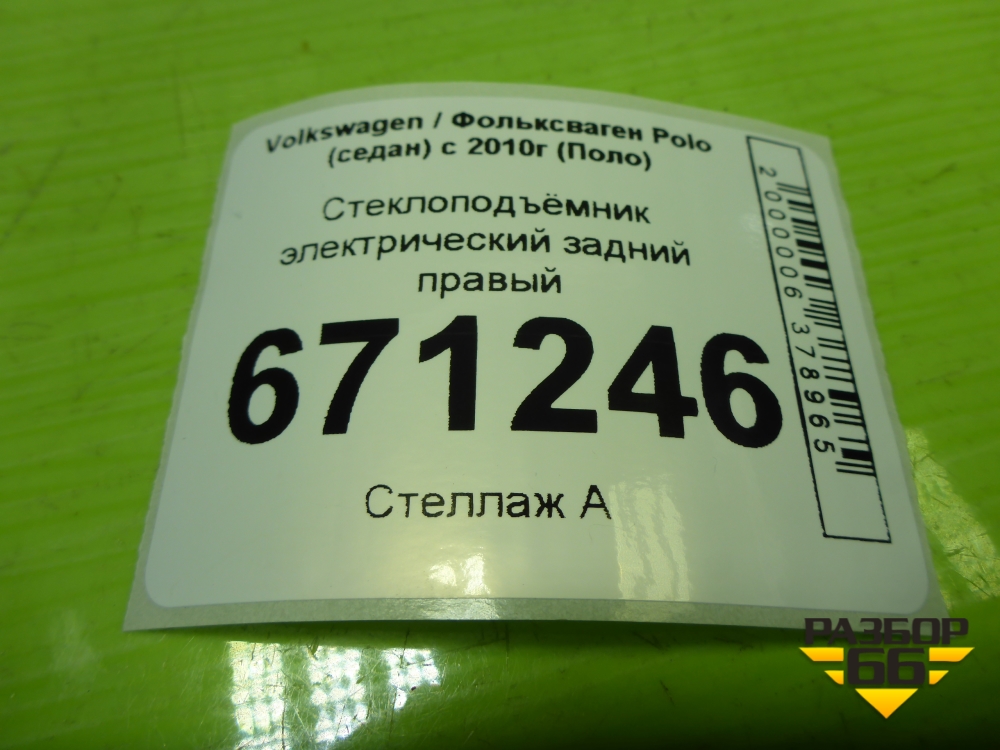 Стеклоподъёмник электрический задний правый (без моторчика) (6RU839462E) для Volkswagen Polo (седан) с 2010г (Поло) в Уфе