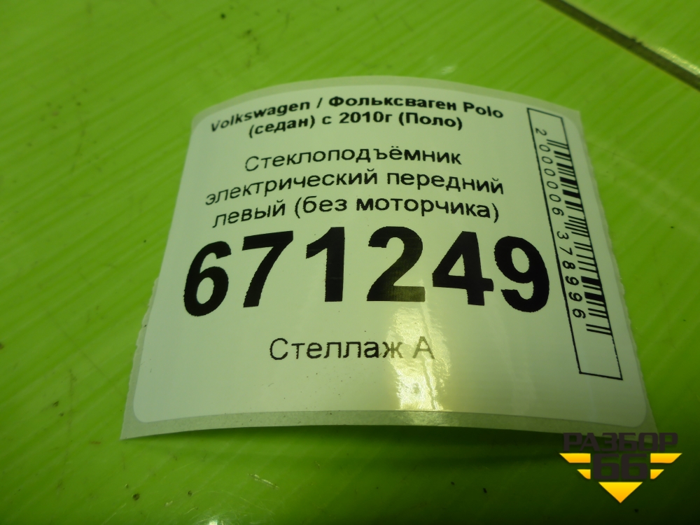 Стеклоподъёмник электрический передний левый (без моторчика) (6RU837461M) для Volkswagen Polo (седан) с 2010г (Поло) в Уфе