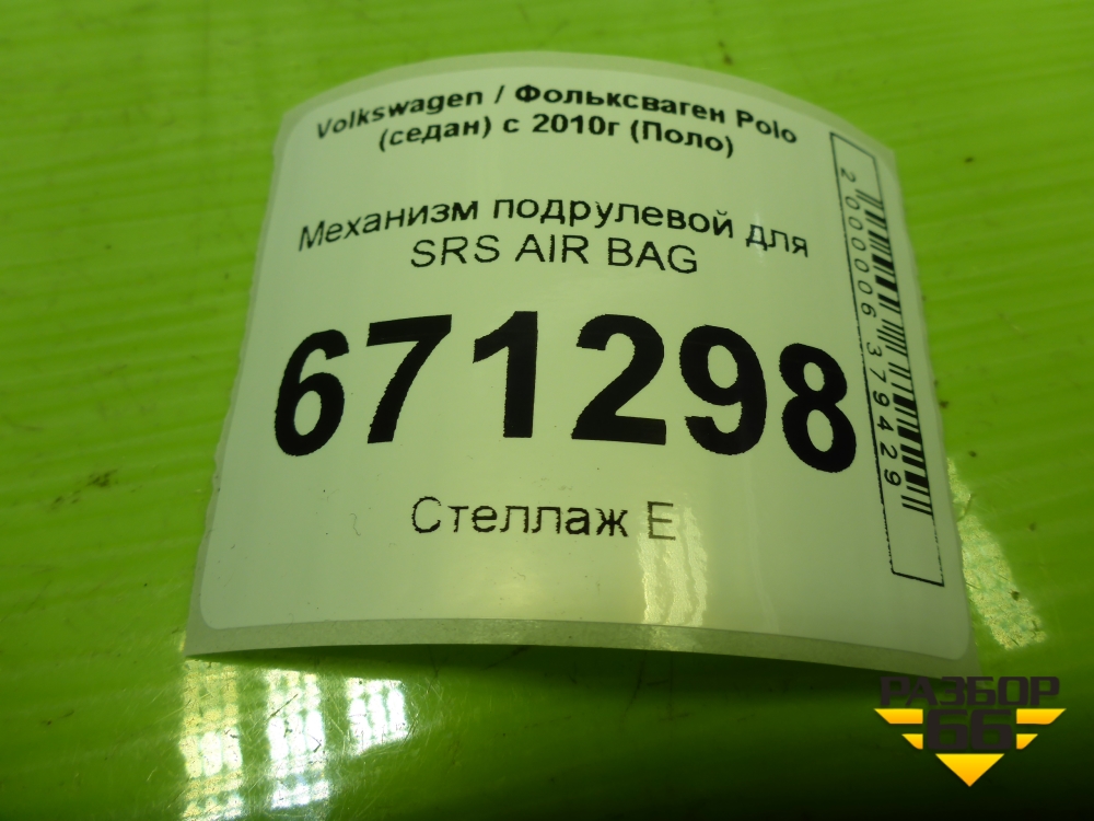 Механизм подрулевой для SRS AIR BAG (6R0959653) для Volkswagen Polo (седан) с 2010г (Поло) в Уфе