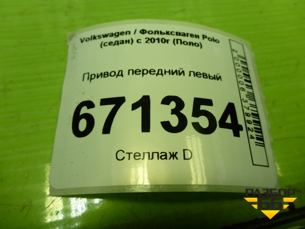 Привод передний левый (1.6л CWV шлиц наруж-36) (6RU407761K) для Volkswagen Polo (седан) с 2010г (Поло) в Уфе