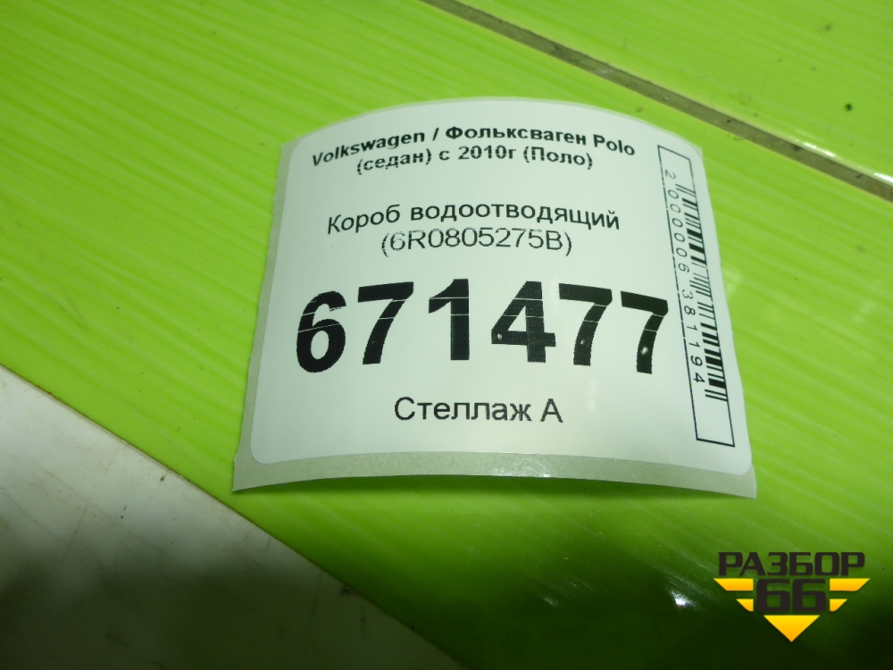 Короб водоотводящий (6R0805275B) для Volkswagen Polo (седан) с 2010г (Поло) в Уфе