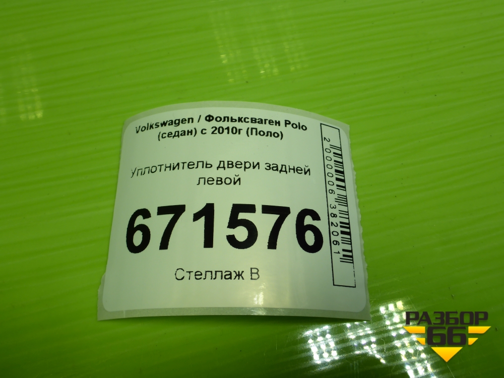 Уплотнитель двери задней левой (6RU867913H) для Volkswagen Polo (седан) с 2010г (Поло) в Уфе