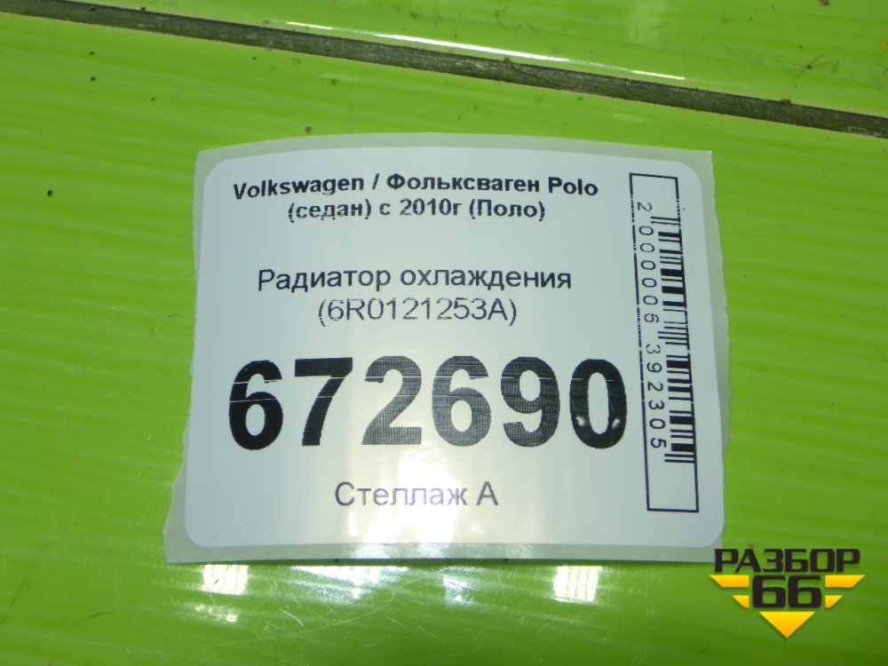 Радиатор охлаждения (6R0121253A) для Volkswagen Polo (седан) с 2010г (Поло) в Уфе