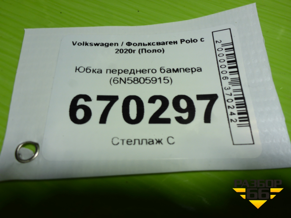 Юбка переднего бампера (6N5805915) для Volkswagen Polo с 2020г (Поло) в Уфе