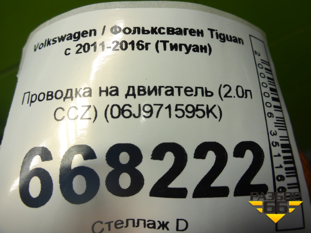 Проводка на двигатель (2.0л CCZ) (06J971595K) для Volkswagen Tiguan с 2011-2016г (Тигуан) в Уфе