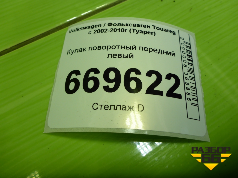 Кулак поворотный передний левый (7L6407257A) для Volkswagen Touareg c 2002-2010г (Туарег) в Уфе