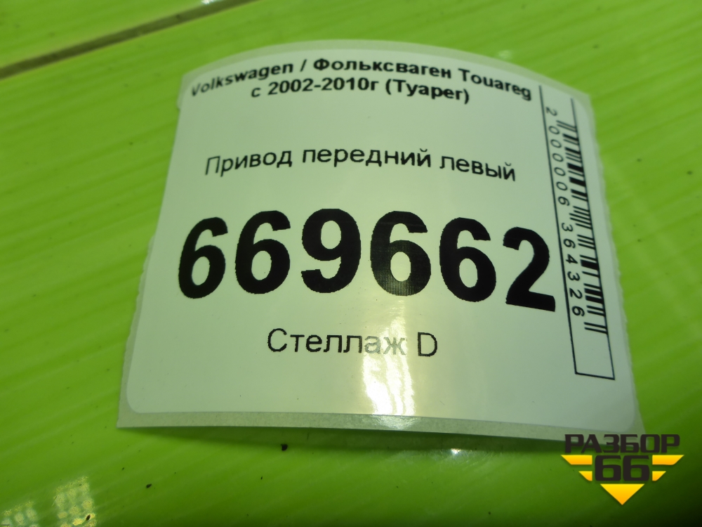 Привод передний левый (шлиц 38) (7L6407271D) для Volkswagen Touareg c 2002-2010г (Туарег) в Уфе