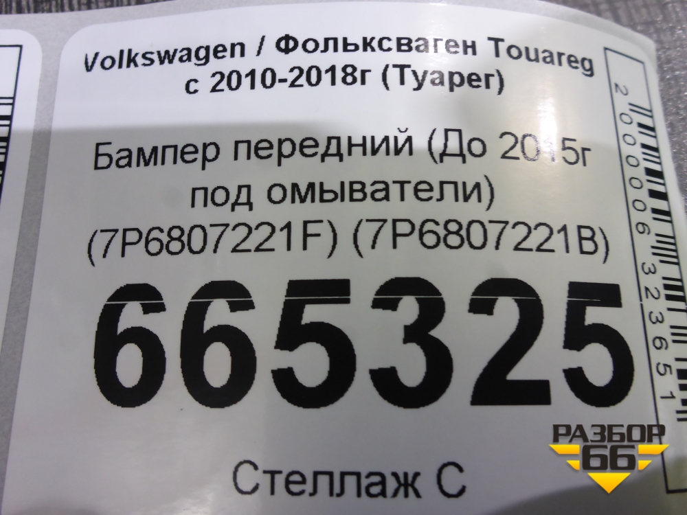 Бампер передний (До 2015г под омыватели) (7P6807221F) (7P6807221B) для Volkswagen Touareg с 2010-2018г (Туарег) в Уфе