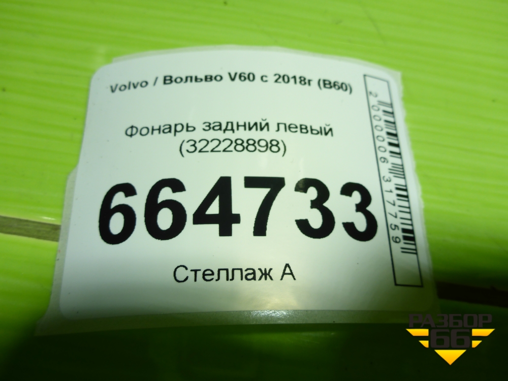 Фонарь задний левый (32228898) для Volvo V60 с 2018г (В60) в Уфе