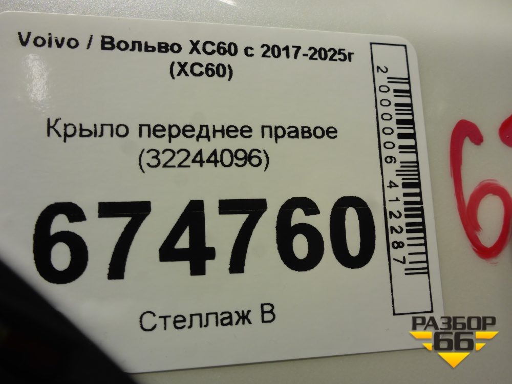 Крыло переднее правое (32244096) для Volvo XC60 с 2017-2025г (ХС60) в Уфе